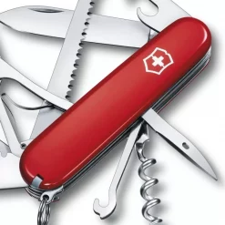 Le couteau suisse Climber Victorinox dispose d’une grande lame de 70 mm, faisant office de lame de couteau multi-usages, d’une petite lame complémentaire de 40 mm (davantage à vocation de cutter), d’un tire-bouchon (toujours utile dans la vie de tous les jours), d’un ouvre-boîtes, d’un petit tournevis pour vis cruciforme, d’un décapsuleur associé à un tournevis plat et un outil à plier les fils électriques (plioir), d’un poinçon alésoir avec chas d’aiguille (usages : percer, aléser, coudre), de pincettes, d’un petit cure-dents et d’un anneau (système d’accroche de type porte-clés). Comme vu ci-avant, le couteau suisse Victorinox Climber possède aussi un crochet et une paire de ciseaux, soit 14 fonctions au total, réparties sur 10 pièces. En résumé, acheter un couteau suisse Victorinox Climber, c’est opter pour un modèle de grande notoriété, à toujours avoir sur soi, en randonnée, en trek, en voyage ou dans la vie de tous les jours. Le Climber peut également être utile en situation de bivouac ou de survie.