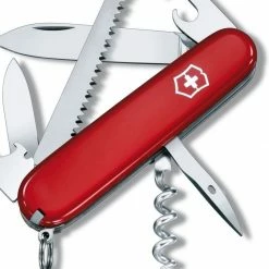Le couteau suisse Victorinox Hiker combine 13 fonctionnalités au total, dont une grande lame (longueur : 70 mm), une petite lame de précision, une scie à bois, un ouvre-boîtes avec petit tournevis, un décapsuleur avec tournevis plat et plioir de fils électriques, un tournevis cruciforme Phillips, un poinçon alésoir avec chas d’aiguille (utilité : coudre, calibrer, gratter, percer), des pincettes, un cure-dents et un anneau de transport. En résumé, acheter un couteau suisse Victorinox Hiker, c’est acheter un couteau multifonction polyvalent, idéal en randonnée, en trek, en camping et en alpinisme. Remarque : ce couteau suisse peut également être d’un grand secours en situation de survie et bivouac.
