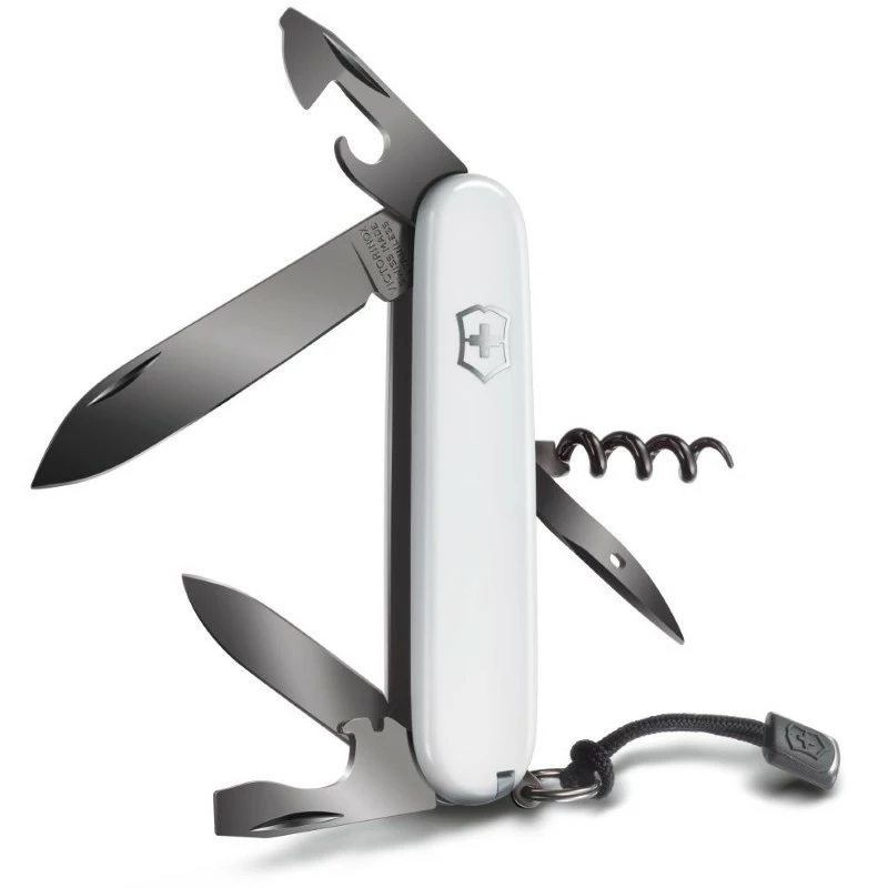 Le Spartan PS White ou Spartan PS blanc complète d’une belle manière la gamme Victorinox Spartan. Universel et élégant, le Spartan PS reprend fidèlement la forme, les dimensions et les outils du Spartan classique mais avec une nouvelle couleur de manche ainsi qu’un traitement spécial au niveau des outils : il s’agit d’un traitement PoliSpectral, d’où le nom de Victorinox Spartan PS. Ce traitement donne une jolie teinte noire anthracite à toute la partie métallique du couteau suisse. En fonction de la lumière environnante, cette teinte noire anthracite varie légèrement et subtilement. Pour l’occasion, il est équipé d’un petit cordon attaché au niveau de l’anneau porte-clés.
