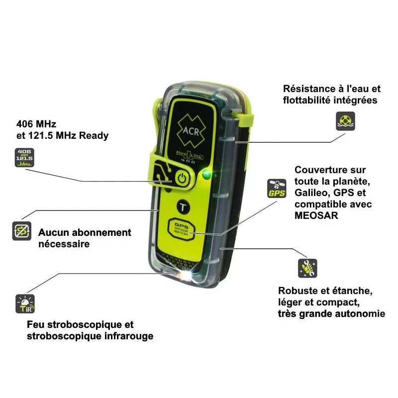 Peu de balises de détresse peuvent se prévaloir d’une telle efficacité. Bénéficiant d’une couverture mondiale, le modèles ACR Resqlink fonctionnent dans n’importe quelle région du globe : où que vous soyez, si vous déclenchez votre balise de détresse, les équipes de secours reçoivent aussitôt votre géolocalisation afin de vous retrouver. Généralement, une balise d’urgence ou une balise de localisation personnelle fonctionne avec un abonnement payant mais ce n’est pas le cas avec la balise ACR Resqlink 400 PLB : aucun abonnement n’est nécessaire et c’est là aussi son grand point fort. Un autre avantage réside dans son maniement : les balises ACR Resqlink se manient très facilement et très rapidement. Elles résistent à l’eau et elles flottent : elles restent toujours à la surface de l’eau, elles ne coulent pas. Pour toutes ces raisons, elles conviennent parfaitement pour les activités de randonnée engagée ou de trek, de nautisme, de survie et de voyage. En cas d’urgence, elles peuvent s’avérer vitales. Origine de fabrication : États-Unis.