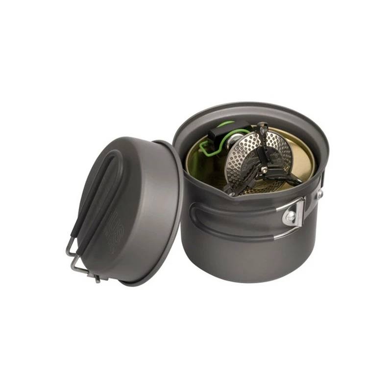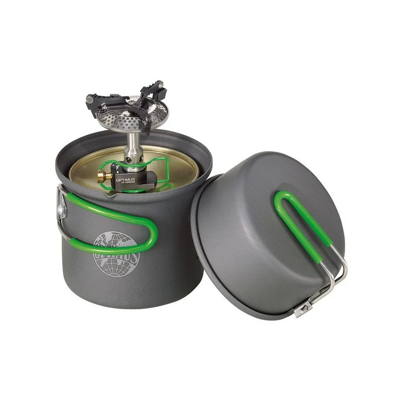 Affichant un poids total de 272 grammes (poids léger) pour des dimensions de 107 mm par 136 mm (encombrement réduit), le set de cuisson Optimus Pack Solo ne prend que très peu de place dans votre sac à dos. Le Pack Optimus Solo est un kit de cuisson complet (réchaud + popote dont une petite casserole et une petite poêle ou assiette), robuste (popote en aluminium anodisé, réchaud en acier et aluminium) et polyvalent. Pour optimiser votre paquetage, il est possible d’incorporer au Pack Optimus Solo : une cartouche de gaz de 100 grammes, une petite éponge (pour le nettoyage de la popote), des couverts pliants (couteau, fourchette et cuillère) et un petit torchon. Vous obtenez ainsi un kit de cuisson « tout en un » extrêmement compact.