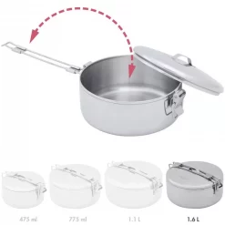 Prévu pour une personne, ce kit popote regroupe les éléments essentiels pour cuisiner et manger en camping, bivouac et trekking. Ce set se compose d’une casserole ronde, d’une assiette (servant également de poêle et de couvercle de popote), d’une tasse de 30 centilitres, d’une fourchette et d’une cuillère (avec étui de protection ou mousqueton selon arrivage). Tous ces éléments sont en acier inoxydable : anticorrosion, facilité d’entretien, solidité, parfaite conformité avec les normes sanitaires européennes et américaines. Une housse est fournie avec la popote : elle empêche l’ensemble de s’ouvrir accidentellement lors du transport.