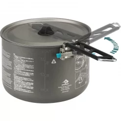 1,1 litre, c’est la capacité intermédiaire parmi les popotes MSR de la famille Alpine Stowaway. C’est parfait pour une personne. Deux choses retiennent l’attention quand on s’intéresse à la popote MSR Alpine Stowaway : c’est le haut niveau proposé en termes de qualité de fabrication mais aussi le côté pratique de la poignée. Cette dernière est extrêmement fiable et bien étudiée. Elle sert non seulement à manipuler avec précision la casserole quand on cuisine ou quand on mange et elle sert aussi à fermer votre popote de façon sûre : poignée rétractable et blocable. Il n’y a aucune chance pour que votre popote s’ouvre pendant votre randonnée ou votre trek. Il est donc parfaitement possible d’entreposer quelques petits accessoires de camping ou de trek à l’intérieur pour économiser de la place (réchaud compact, briquet et couteau suisse par exemple), en toute sécurité.