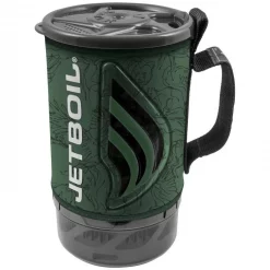 Le nom Jetboil Flash n’est pas usurpé : c’est le réchaud de trekking le plus rapide de toute la série avec un temps d’ébullition de seulement 100 secondes pour 50 centilitres d’eau (soit un demi litre). Ultra performant, le réchaud Jetboil Flash est suffisamment compact pour que l’on puisse l’emporter sans problème en randonnée ou en voyage autour du monde. D’autant que ce n’est pas seulement un réchaud de randonnée, c’est aussi une popote et tasse (contenance : 1 litre) : c’est donc un ensemble complet de cuisson avec allumage piézométrique intégré, revêtement anti-brûlure et trépied ainsi que des graduations de dosage, un couvercle et un égouttoir.