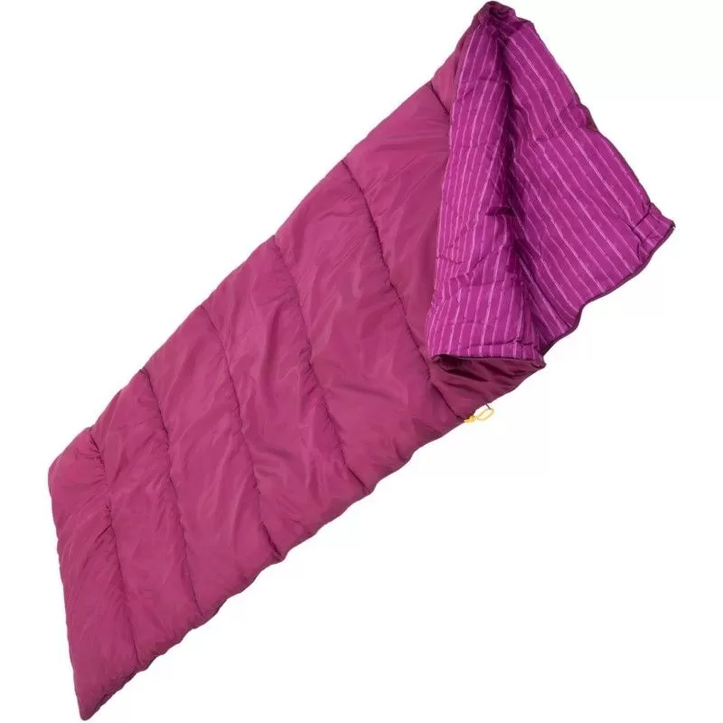 Doux, long de 190 cm et large de 80 cm, le sac de couchage Regatta Maui en version Single est confortable et spacieux. Muni d’un zip à double curseur, il peut s’ouvrir aussi bien par le bas et par le haut. Son garnissage synthétique en fibres creuses (100% polyester) consiste en une couche unique pour un rendement thermique uniforme (pas de phénomène de pont thermique). Sa température de confort a été évaluée à 15°C : il convient donc très bien pour une utilisation à domicile n’importe quand ou en camping l’été. Il est livré avec une housse de rangement. Concrètement, le Maui Single offre un volume rangé de 30 cm (diamètre) par 47 cm (longueur) et un poids de 1300 grammes. Couleur dominante : violet.